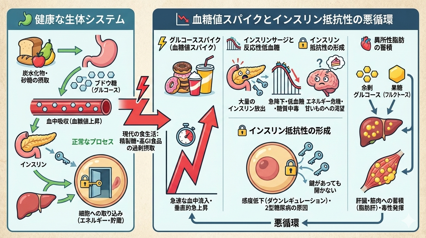 📉 血糖値スパイクとインスリン抵抗性の悪循環